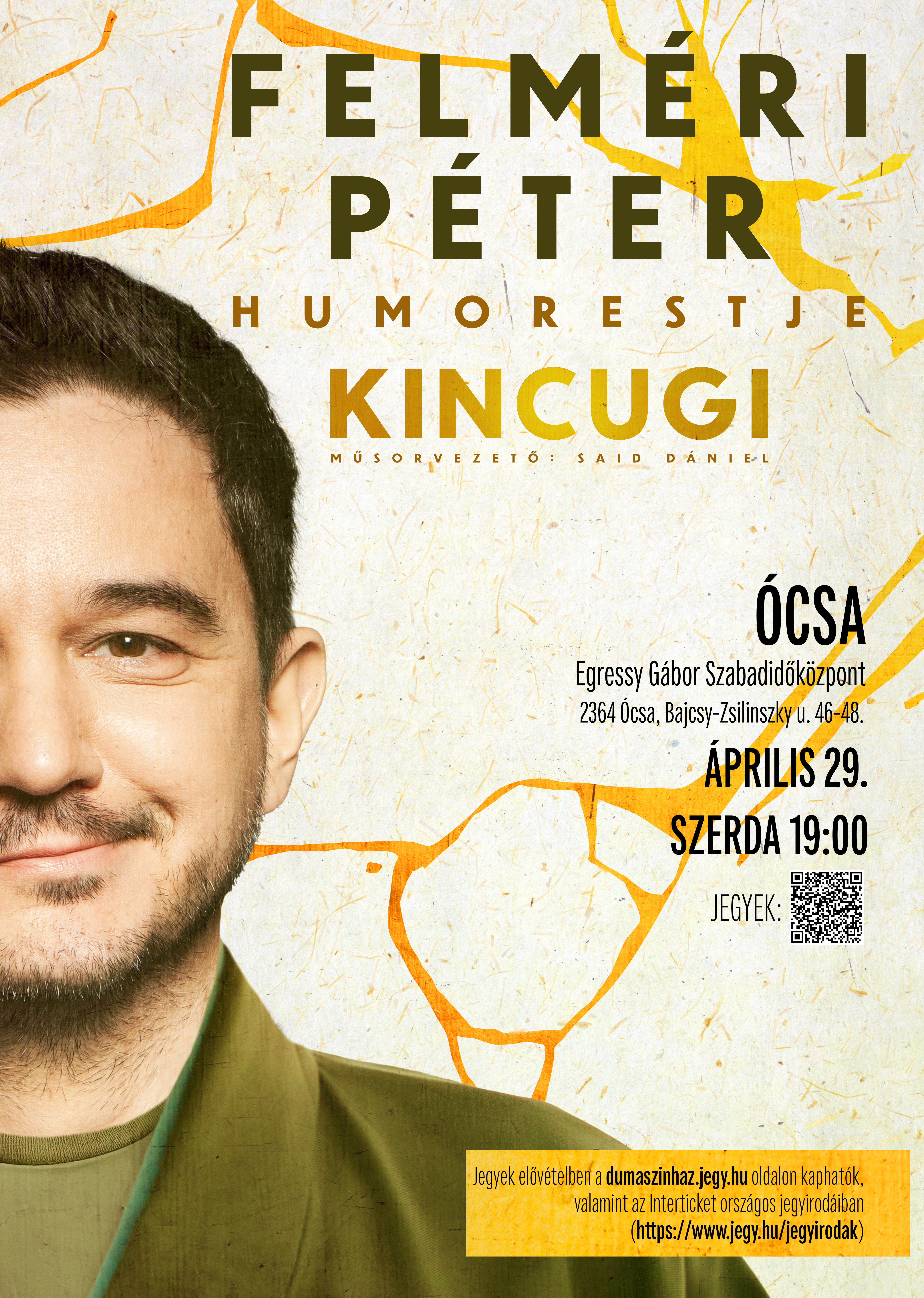2026. április 29-én 19.00 órakor Felméri Péter önálló estje "Kincugi" címmel Ócsán, az Egressy Gábor Szabadidőközpontban!
