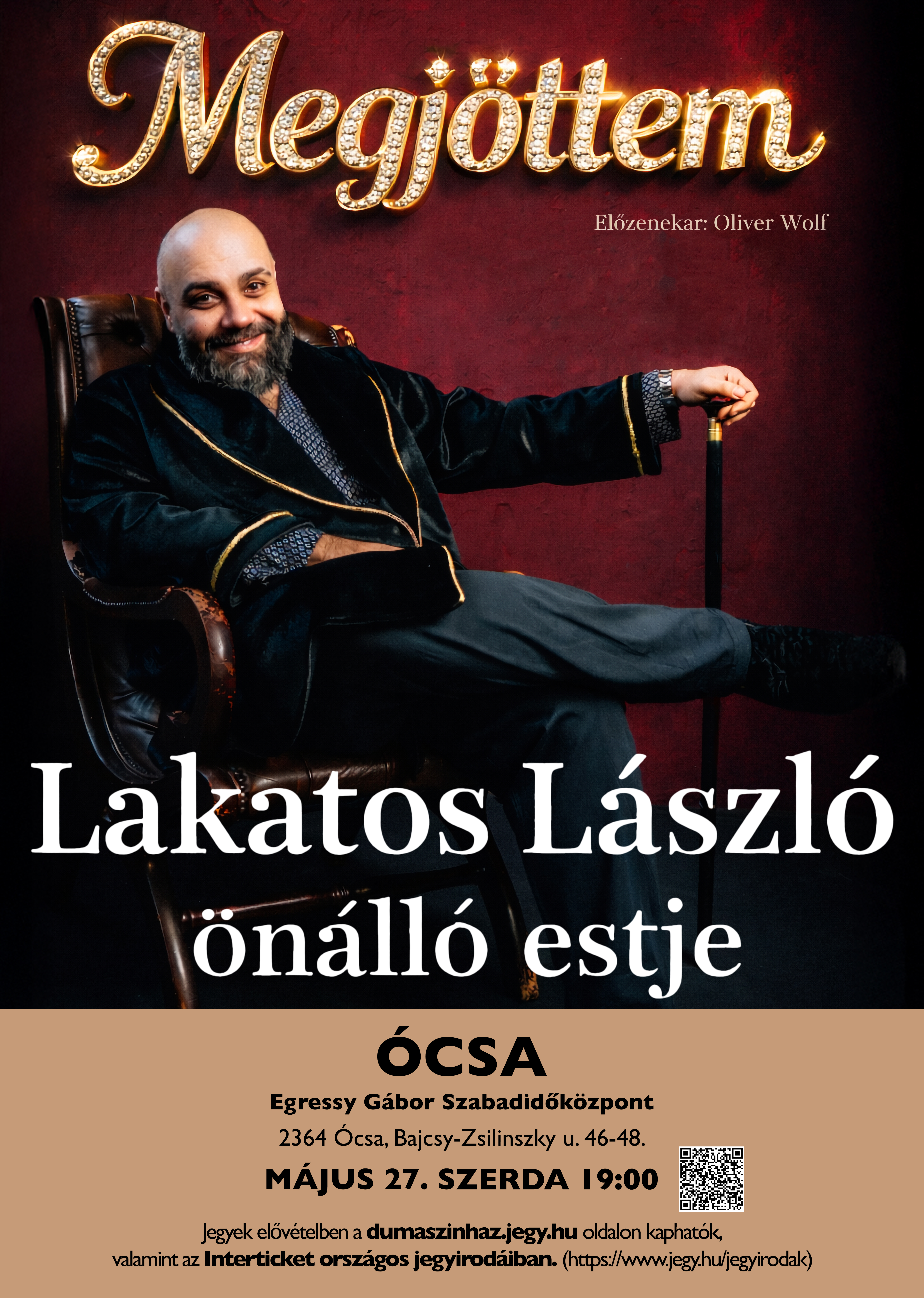 2026. május 27-én 19 órakor Lakatos László önálló estje "Megjöttem" címmel Ócsán, az Egressy Gábor Szabadidőközpontban!