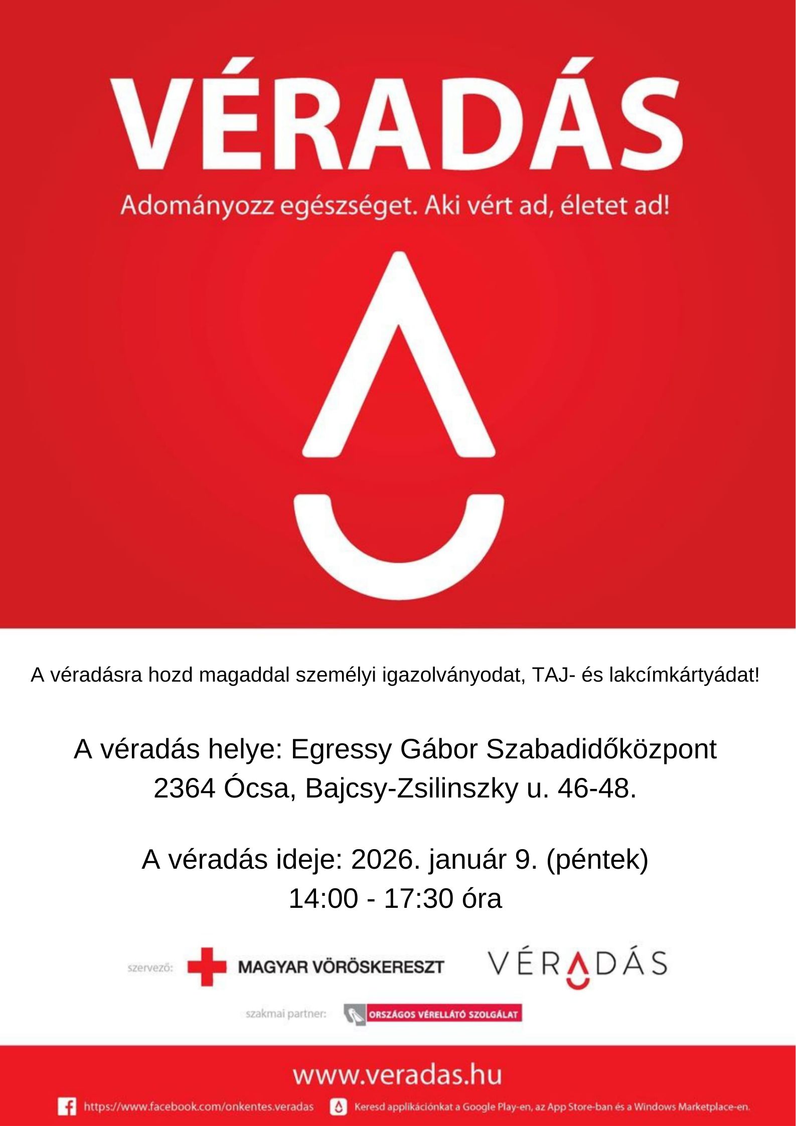 A véradásra hozd magaddal személyi igazolványodat, TAJ- és lakcímkártyádat!